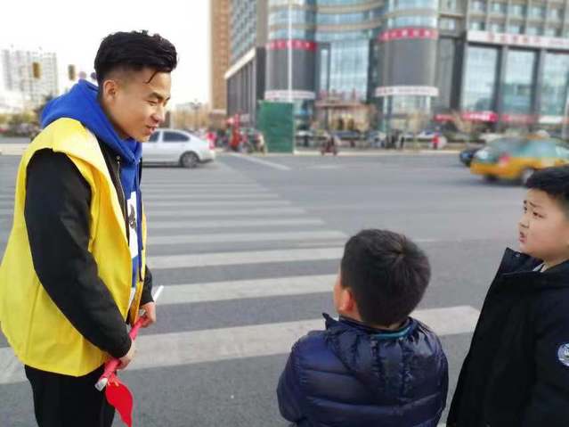 为大力弘扬雷锋精神,营造"学雷锋,做公益,乐奉献"的良好氛围,3月15日下午三时,美术学院"七色花"大学生志愿者服务队在潍坊北海学校门口举办以“礼让斑马线,文明伴我行”为主题的志愿服务活动。