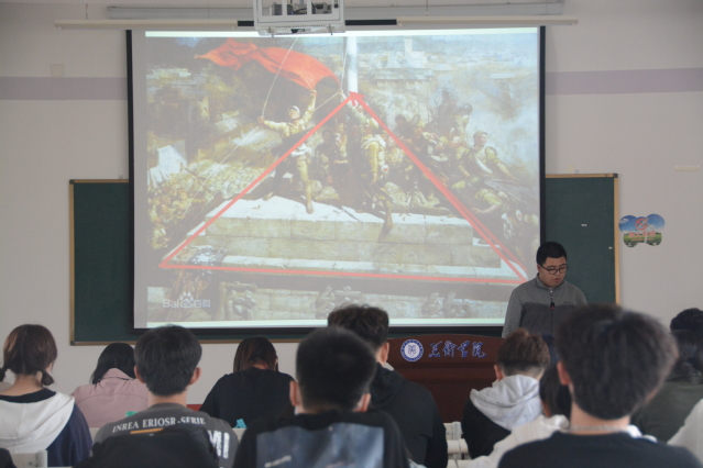 红色经典是中国共产党辉煌革命史中的重要篇章,红色经典美术作品则是其重要组成元素。活动中,姜贺、王坤琪等6名同学分别以《在党史学习中“艺”路同行》、《青春心向党,逐梦新征程》等为题,为同学们带来了一场精彩的红色美术经典作品赏析。这些作品展现了中国革命曲折而辉煌的历史:丝丝入扣的笔触,栩栩如生的场景,仿佛将同学们带回真实的历史场景中,使大家再次重温了中国革命历史的伟大进程。