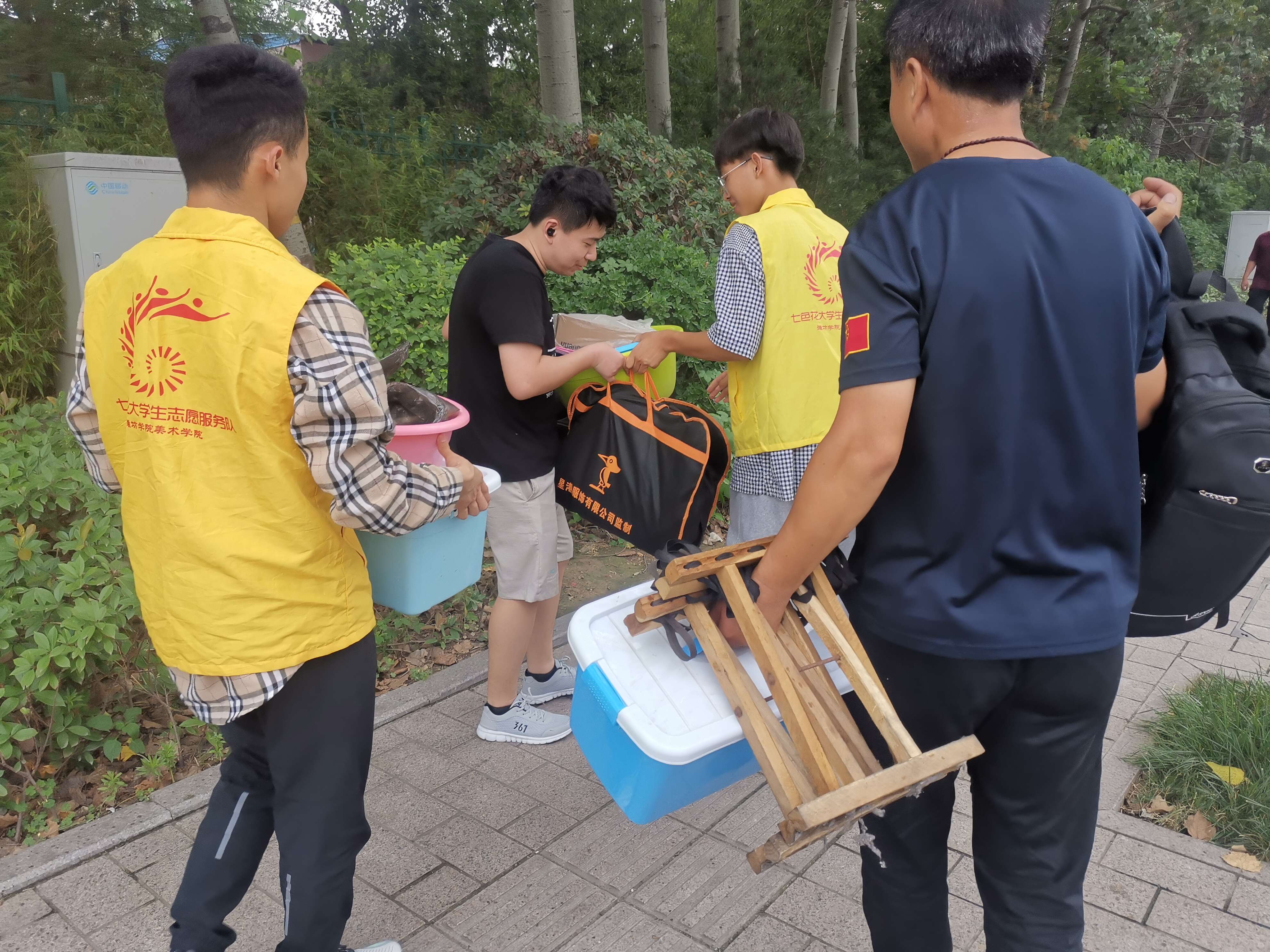 又是一年毕业季。日前,2021届毕业生带上母校美好的祝福,踏上人生新的征程。为助力毕业生顺利离校,发扬志愿服务精神,美术学院“七色花”大学生志愿者服务队特地送上一缕“爱”的清凉,学弟学妹为毕业生搬运行李,温馨送别师兄师姐。
