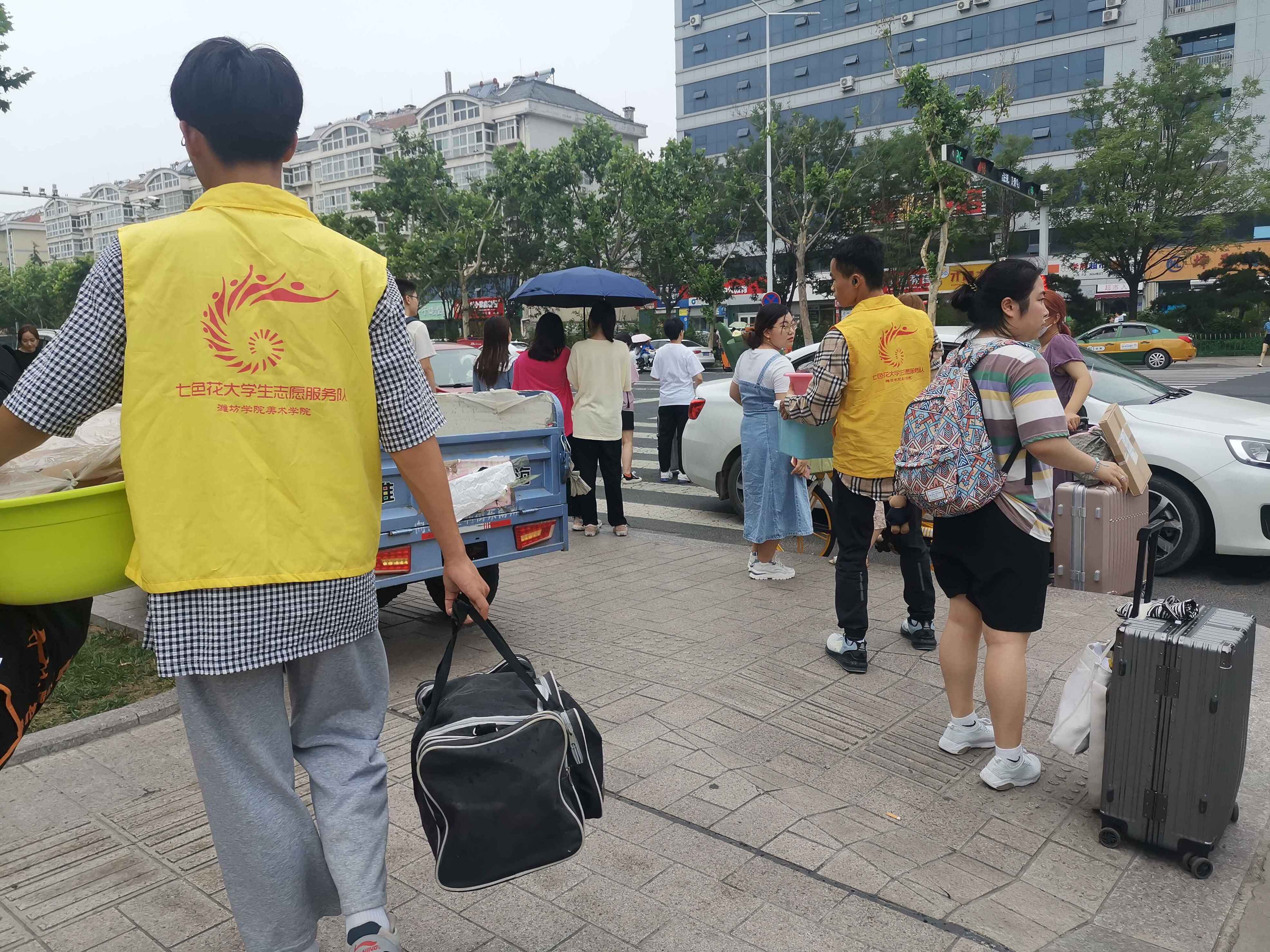 志愿者们在校园内外帮助毕业学长学姐穿梭于各楼层搬运物品,将行李运送到快递点,有的志愿者借来摆渡车往返校门与宿舍楼运送行李。虽然天气炎热,需要搬运的行李沉重,但抵挡不了志愿者们服务的热情,在一趟趟搬运中他们不辞辛苦,充分展示了志愿者吃苦耐劳、服务他人的奉献精神。在学校南门、北门还有志愿者引导家长有序停放车辆,维持离校秩序和保障公共安全。志愿者们分工明确、相互协作,搬运工作秩序井然,离校过程也顺利进行。毕业生全部离校后,志愿者们再次集合,将离校搬运过程中散落的垃圾一一拾起,还同学们一个环境优美的潍院校园。