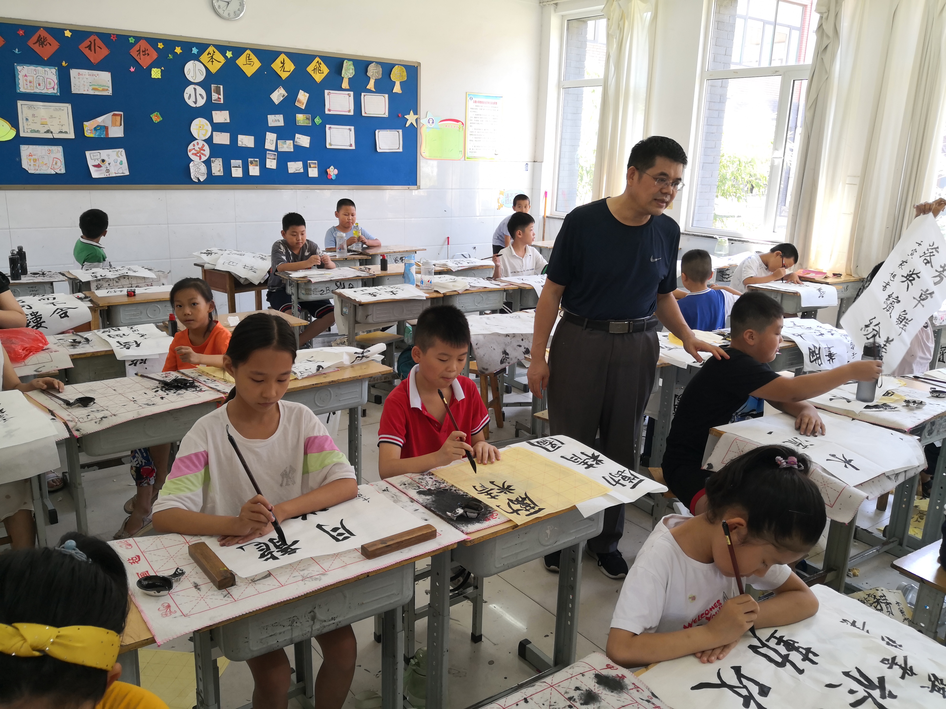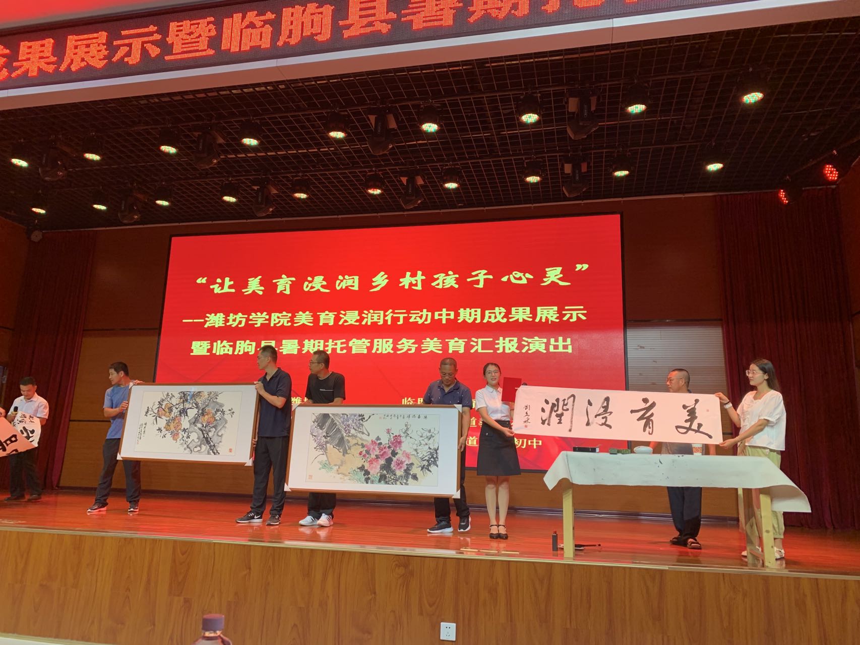 前期,根据疫情防控形势,学院采取线上的方式,为学生们开设书法和声乐课程,在两所学校设立教学实践基地,为后期的活动开展打下坚实的基础。本次暑假期间,在临朐县教体局的协调下,潍坊学院美术学院和音乐学院领导及专业骨干教师积极服务美育课程教学,与临朐冶源小学与辛寨初中领导与广大教师,放弃假期休息的时间,共同为暑期托管的孩子们进行了两期、每期各10天的艺术指导活动。开设书法、绘画、声乐、舞蹈、中考美术音乐辅导课程,共计授课720学时,同时为学生提供全部学习用品和器材,组织专业教师创作艺术作品,服务校园文化建设。以点及面, 辐射带动 周边10 所以上的 中小学校。