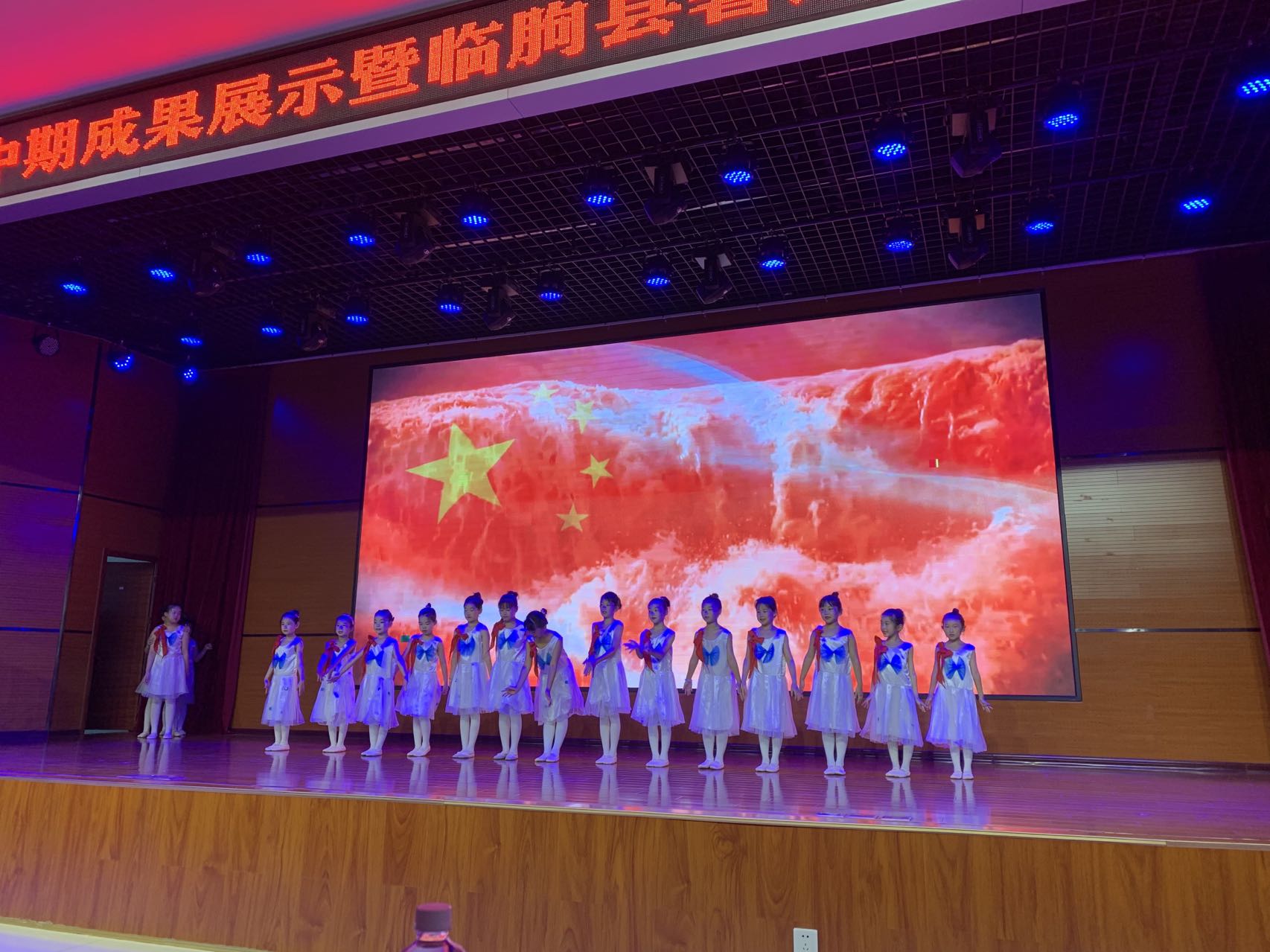 以美育人,向美而行。汇报展演包括书法展示、合唱、舞蹈的形式,孩子们在水墨淋漓中体味国画、书法的人文底蕴,在宛转悠扬的动人旋律里感受声乐的动人力量,在轻盈优美的身形变幻中展示舞蹈的无限魅力。尽管培训班时间不长,但演出成果却是非常丰硕,这凝聚了两个学院共19位教师的辛勤付出和无私奉献,很多教师晚上排练到九点以后,精彩演出受到领导和教师们的一致赞许。丰富多彩的艺术活动点亮了孩子们向美、向善的心灵,让这群农村孩子学会用眼睛发现美的世界,用耳朵聆听美的声音,用身体表现美的感受。