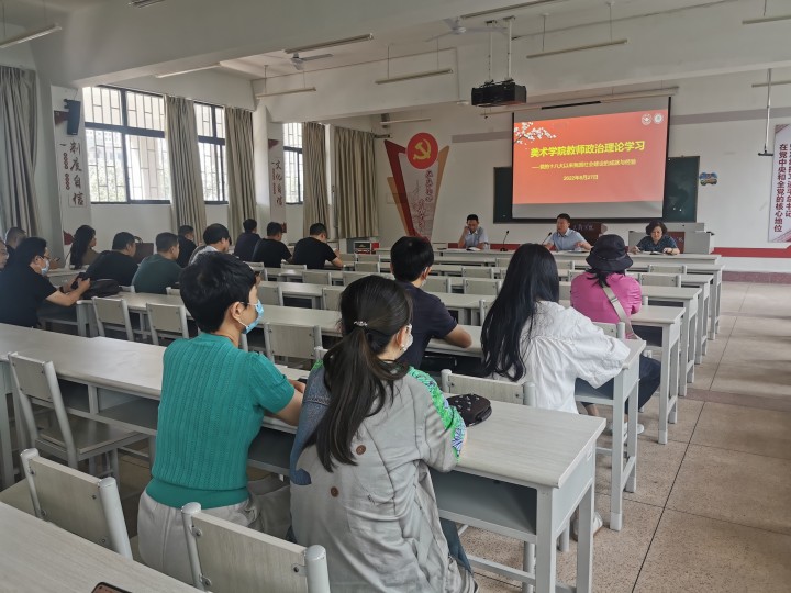8月27日上午,美术学院以“党的十八大以来我国社会建设的成就与经验”为主题,在荟萃楼501多媒体教室进行教职工政治理论学习。美术学院党总支书记刘雪梅主持,全体教职工参加。