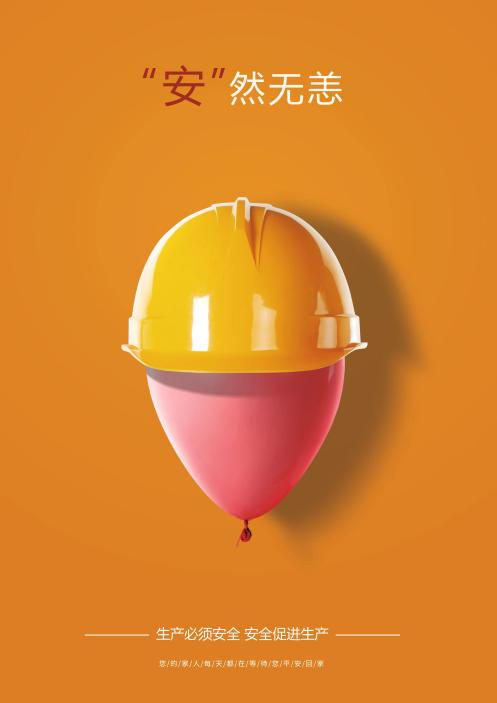 设计说明:为了宣传安全帽的重要性,海报中是一个气球在安全帽的保护下安然无恙,希望工人们重视安全,生产必须安全,安全促进生产,呼吁安全第一,家人每天都在等待您的回家。