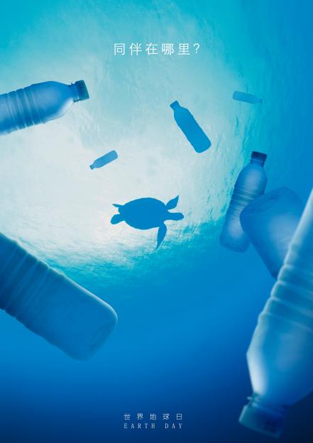 设计说明:通过世界地球日这一世界性的节日,宣传塑料制品对地球的危害和对海洋生物的危害,呼吁大家保护环境爱护地球,让地球也能呼吸新鲜空气,动物们都能畅快的生活在地球上,而不是与“塑料”共舞。