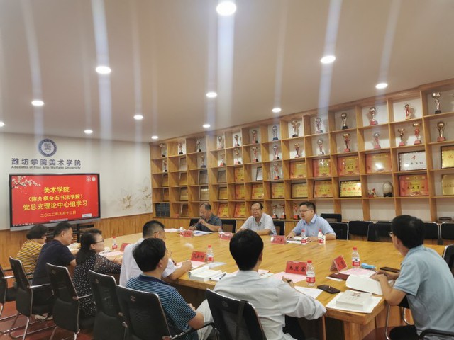 9月13日下午,美术学院(陈介祺金石书法学院)党总支理论学习中心组在荟萃楼208会议室集体学习。学校党委副书记、校长冯滨鲁,天瑞磁悬浮产业学院列席旁听工作组相关负责同志列席旁听中心组学习,会议由美术学院党总支书记刘雪梅主持。
