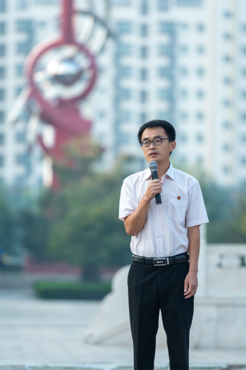 9月26日,美术学院“‘艺’心跟党走,喜迎二十大”主题升旗仪式在行政楼广场举行,美术学院党总支副书记仉新刚,团总支书记、学工办主任于国,全体辅导员,学生党支部全体党员和2022级全体学生参加。仪式由2020级学生党员翟子萌主持。