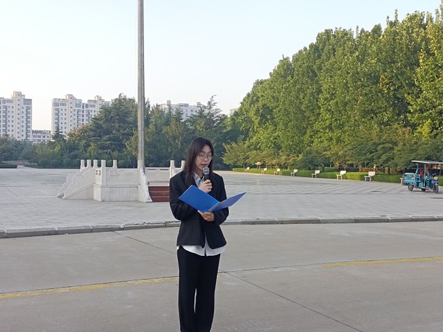 随后,美术学院团总支书记、学工办主任于国发表国旗下的讲话。于国老师指出,党的二十大即将召开,国家的希望在青年,民族的未来在青年,时代召唤青年,青年创造未来,青年大学生要更加坚定四个自信,以踔厉奋发之姿迎接党的二十大胜利召开。希望同学们涵养爱国之情、砥砺强国之志、实践报国之行,自觉把个人理想、奋斗、事业熔铸到国家富强、民族振兴、人民幸福的历史伟业中。2022级美术学专业郭晓琪代表学生发言。她表示,要把青春奋斗融入党和人民的事业,勇敢做时代前列的奋进者、开拓者和奉献者,努力做强国新征程上的有为青年,以良好的精神面貌开启大学生活新征程,以奋进姿态喜迎党的二十大胜利召开。