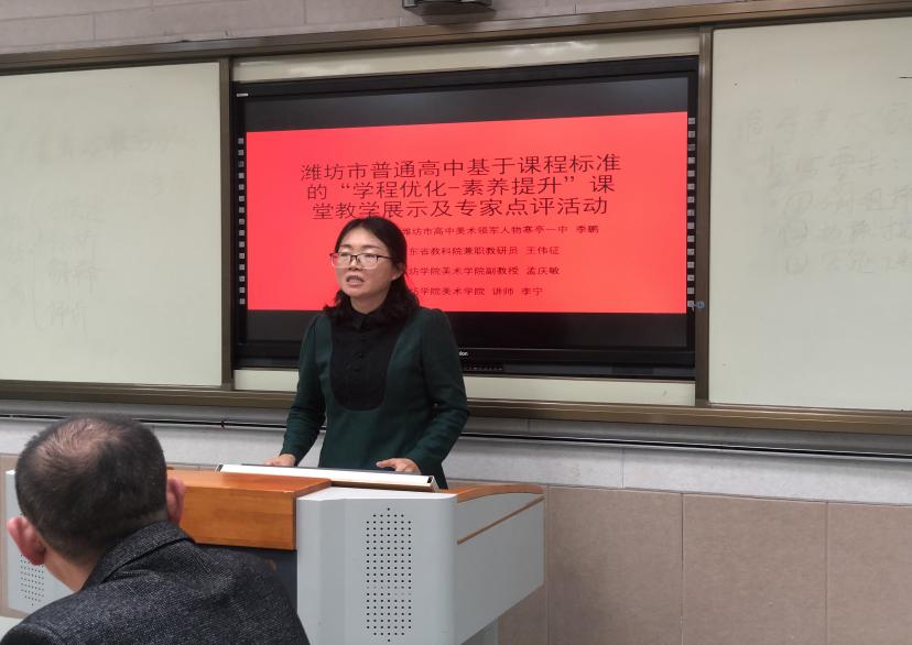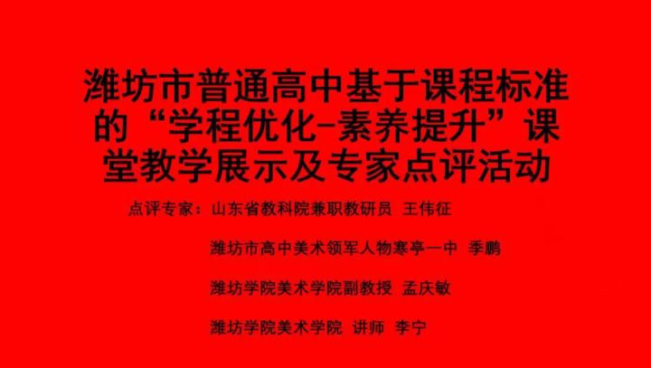 2022年10月8日-10日,潍坊市教科院依托高中新课程新教材实施国家级示范区优势,举办潍坊市普通高中基于课程标准的“学程优化-素养提升”课堂教学展示及专家点评活动。潍坊学院美术学院美术学专业教师李宁与孟庆敏,应邀参加了10日下午高中美术学科的教研活动,本次活动在昌乐一中举办。