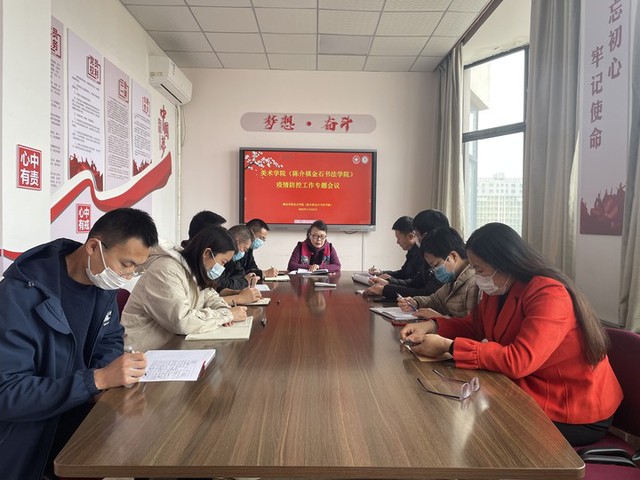 11月22日上午,美术学院(陈介祺金石书法学院)在荟萃楼505会议室召开专题会议,安排部署近期学院疫情防控工作。学院领导班子成员、院长助理、科室负责人、辅导员参加会议。会议由学院党总支书记刘雪梅主持。