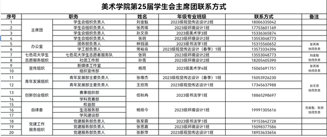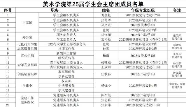 美术学院第25届学生会成员名单