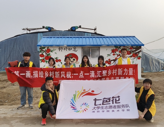 学院扎实开展“艺术赋能乡村振兴”、“百万大学生进社区”等系列社会实践活动,以“七色花”、尽美社为代表的大学生志愿服务队获省级重点团队、校优秀服务队,获评实践活动“先进示范单位”,受到山东教育报、潍坊融媒体等多家媒体宣传。学院精心打造的“爱艺同行”学生作品义卖活动,走进生活、走进实践,成为学院“新名片”。暑假期间,师生在潍城、郯城开展美化乡村环境墙绘,面积1600余平,被山东教育新闻、山东新闻农村大众网等多家媒体宣传报道。