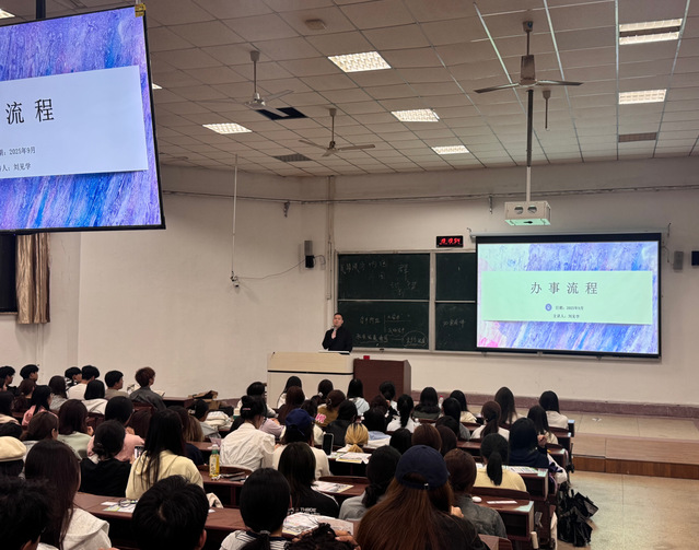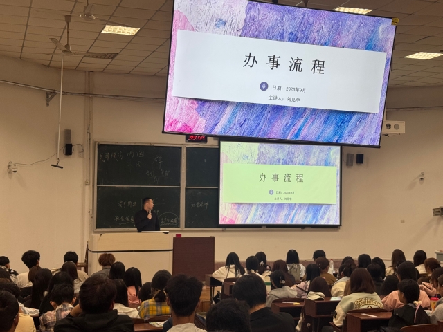 为响应学校新生入学教育部署,切实解决2025级新生“校园办事入门难”问题,9月25日,美术学院在荟萃楼1109开展新生办事流程专项讲解讲座,学院团委副书记刘见学老师以及部分高年级学生代表,以“清晰流程指引,便捷校园生活”为主题,采用“政策解读+现场演示+互动答疑”的三维模式,精准覆盖新生入学后高频办理的各项事务,打通新生适应校园的“最后一公里”。