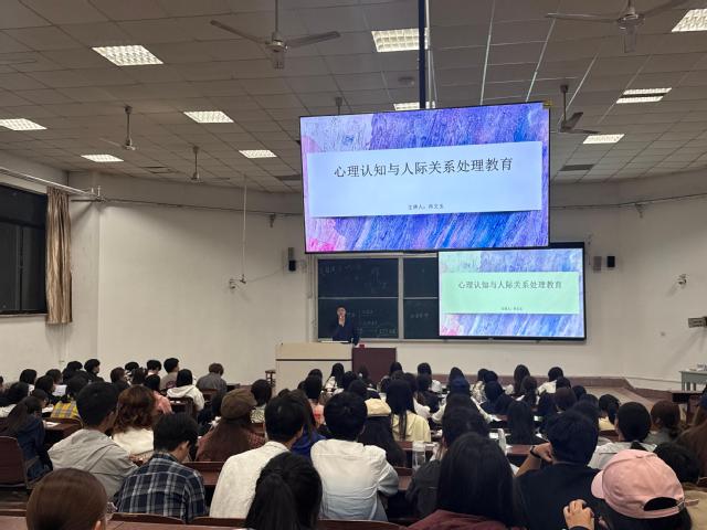 在人际关系教育环节,肖老师围绕“大学人际关系的特点”“常见人际矛盾的化解方法”“如何建立良好的同学关系与师生关系”三大主题展开讲解。他结合大学生宿舍相处、社团活动合作、学业交流等场景,分析了影响人际关系的关键因素,如沟通方式、换位思考能力、边界感建立等,并通过案例比对的方式,让新生直观感受“有效沟通”与“无效沟通”的差异。