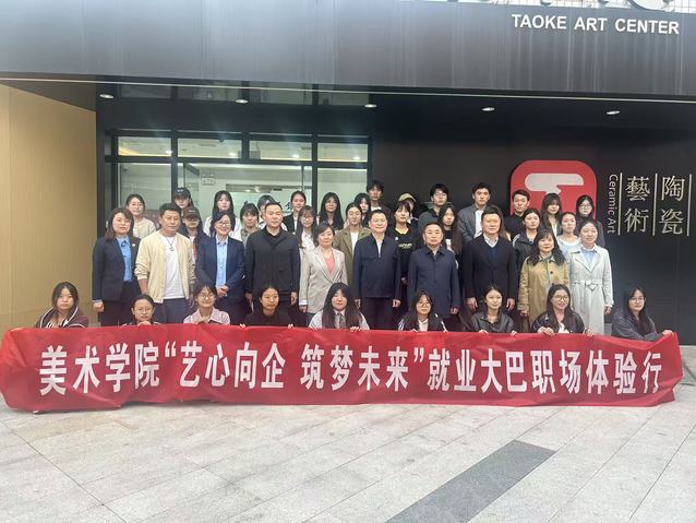 10月14日,由学生工作处(武装部)主办,美术学院承办的“艺心向企 筑梦未来” 就业大巴职场体验行活动顺利开展,学校党委委员、副校长任立春带队,学生工作处(武装部)处长曹兴波及40 名师生走进昌大建设集团装饰公司、希望美术教育,以沉浸式体验深化产教融合,为艺术人才就业铺路。
