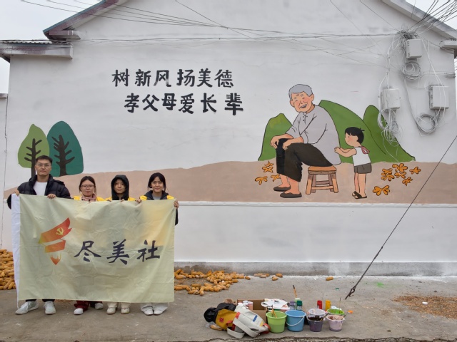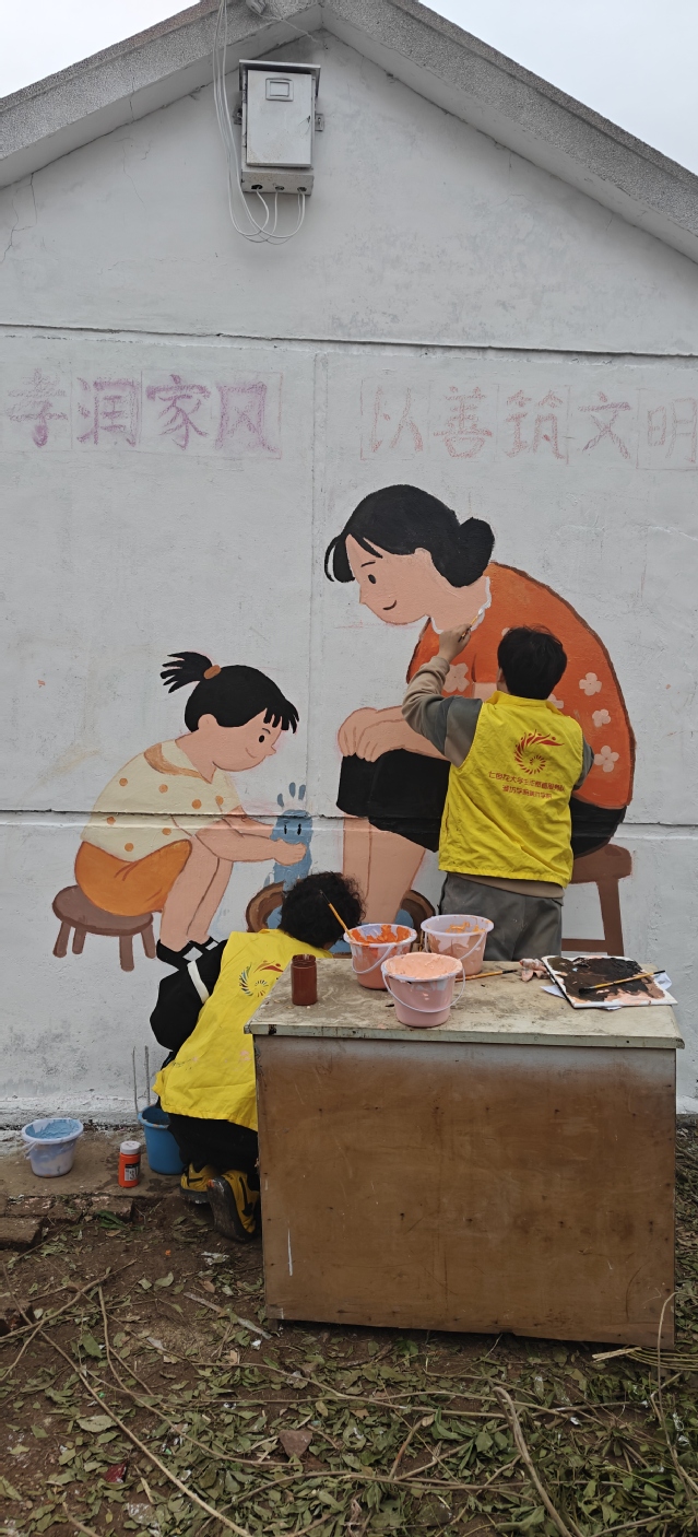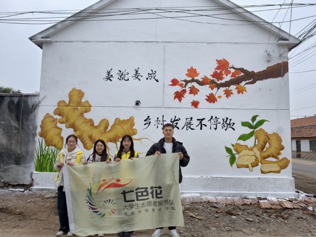 10月25日,我院七色花大学生志愿者服务队与尽美社共同前往安丘市景芝镇小市留村,开展乡村振兴主题墙绘活动。