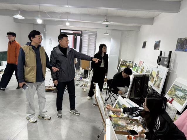 近日,潍坊学院美术学院王勇院长专程前往淄博峨庄,亲切看望了在此地进行风景写生实践的2023级油画专业学生以及带队教师宿峰、靳其涛,为在外的师生送去学院的关怀与问候。
