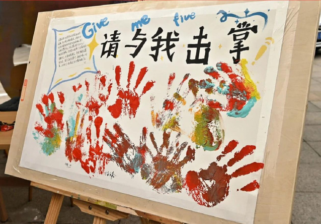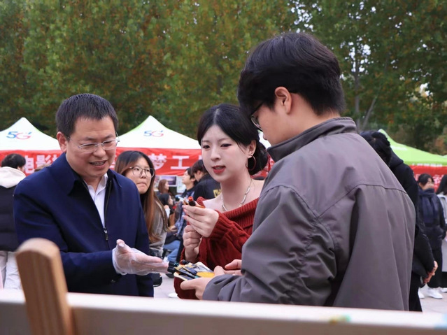 最动容的是,学校党委委员、副校长任立春莅临协会摊位,为特色活动“请与我击掌”郑重按下红色手掌印,并现场提名点赞!这一掌不仅是校领导对协会创意的认可,更是对青年学子敢于表达、乐于联结的鼓励。红色掌印烙印在活动展板上,也镌刻在每一位社团成员的心中,成为最珍贵的青春纪念。