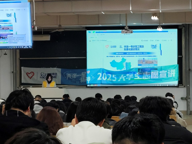 宣讲现场,志愿者们以时间为轴,讲述了“两弹一星”研制历程中科研工作者们隐姓埋名、艰苦奋斗的感人故事。志愿者还结合计算机专业特色,分享了“两弹一星”精神在芯片研发、人工智能等现代科技领域的传承与实践,引导同学们将个人专业发展与国家需求紧密结合。