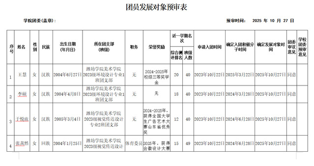 根据校团委关于做好2025年下半年发展团员工作的通知,现将2025年美术学院下半年发展对象预审表进行公示,名单见附件。如有异议,请拨打监督电话反映。