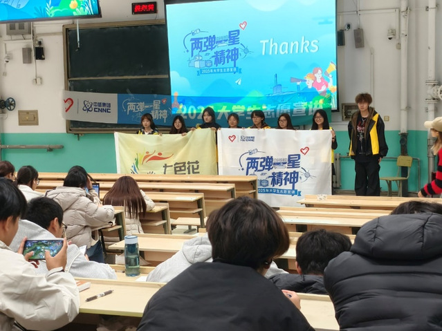 总结:志愿者以清晰的逻辑脉络与饱满的情感表达,构建起“历史溯源—人物聚焦—精神解码”的宣讲框架。依托精心整理的史料,从国际形势、国家需求等维度,生动还原了“两弹一星”工程启动的时代背景,让师生直观理解这一伟大事业背后的战略意义。