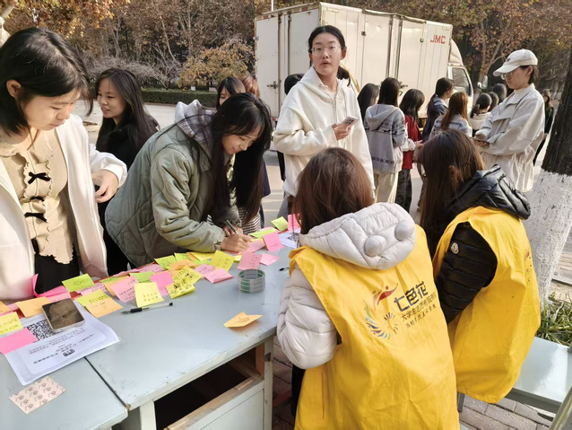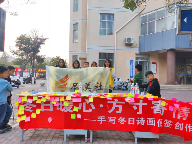 11月15日,美术学院“七色花”大学生志愿者服务队携手尽美社开展“冬日暖心,方寸寄情”手写便签志愿者活动,数十名志愿者主动参与,用笔墨传递温暖与关怀。他们提前筹备纸笔,精心构思文字,在便签上写下暖心寄语与美好祝福,用真诚笔触为冬日增添温情。