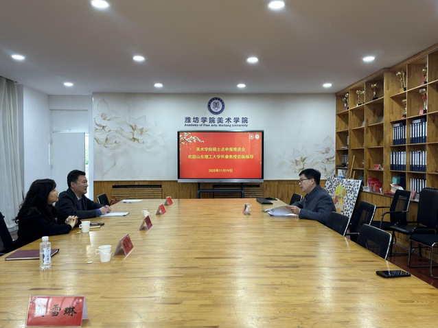 为进一步推动美术学院硕士点申报工作,提升学科建设水平,11月19日,我院在1208会议室召开了硕士点申报工作推进会,并邀请山东理工大学美术与设计学院教授怀康莅临指导。院长王勇,党委副书记、副院长边洪燕,学科骨干教师及相关职能部门负责人参加了会议。