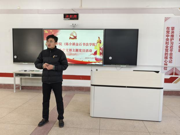 为深入开展学习贯彻习近平新时代中国特色社会主义思想主题教育,增强学生党员责任意识与使命感。11月25日下午,美术学院(陈介祺金石书法学院)学生党支部在荟萃楼501室开展了主题党日活动,全体党员参加,会议由党支部书记卢麟主持。