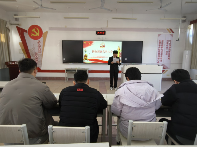 会议伊始,卢麟介绍了本次8名发展对象的基本情况和大会的流程。随后,孙文宗等8名同志依次宣读入党志愿书,表示将以党员标准严格要求自己,为党和人民的事业不懈奋斗。入党介绍人肖文玉、王梦琪分别介绍了孙文宗等8名同志在培养考察期间的表现,与参会党员对其能否入党进行充分讨论。经无记名投票表决,大会同意接收孙文宗等8名同志为中共预备党员。