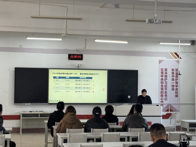 为进一步统筹推进学院就业工作,精准对接毕业生就业需求,切实提升就业质量与就业率,11月28日,我院在1501会议室召开就业工作推进会。学院领导班子成员、各系部主任、辅导员及相关工作人员参加会议。