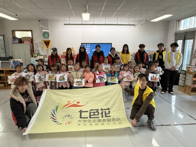 为丰富社区儿童课余生活,弘扬志愿服务精神。近日,我院“七色花”大学生志愿者服务队与尽美社的志愿者们走进潍坊市龙源社区,开展“绘美童年”美术教室公益活动,带领社区20余名孩子用画笔勾勒创意,在艺术实践中感受美、创造美。