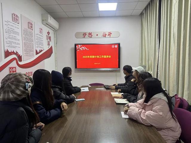 为深入贯彻国家西部大开发战略,引导青年学生将个人理想融入国家发展大局,鼓励更多学子提前规划职业路径、投身西部建设。12月11日,我院面向大二、大三学生召开西部计划专项宣讲会。学院就业指导专员王梦琪主持会议,各非毕业年级学生代表及感兴趣的同学参与本次宣讲。