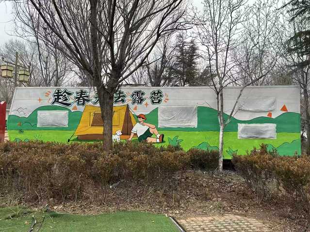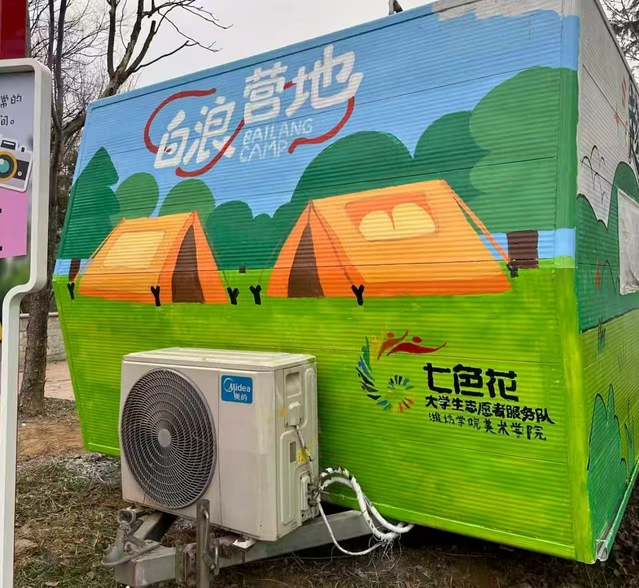 本次墙绘创作紧密结合年货嘉年华的喜庆氛围与白浪河地域文化特色。同学们在设计中巧妙融入营地自然风光与人文意象,使画面既洋溢着红火热闹的春节气息,又流淌着生动亲切的乡土情怀。一幅幅精心绘制的作品,不仅美化了营地环境,营造出浓厚的迎新春、办年货场景,也展现了同学们将专业设计与地方需求、节庆文化相融合的创新实践能力。