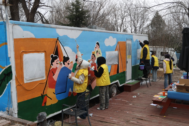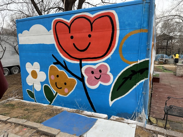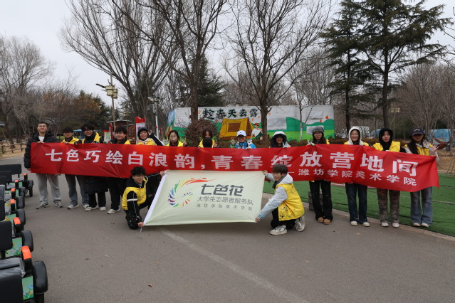近日,我院“七色花”大学生志愿者服务队联合“尽美社”前往潍坊市潍城区白浪河营地乐园,开展了“七色巧绘白浪韵·青春绽放营地间”主题墙绘活动,以专业创作助力2026潍坊年货嘉年华。活动当日气温骤降,寒风刺骨,但在辅导员老师的全程带领下,队员们热情不减、斗志昂扬,团结协作,克服严寒天气,历时一天顺利完成墙面彩绘,用青春笔触为冬日的营地乐园注入了鲜活色彩与文化暖意。