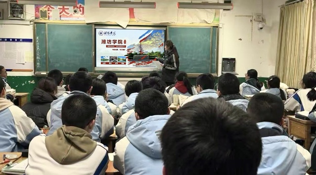 宣传过程中,唐佳结合自身在美术学院的学习成长经历,向高中学弟学妹详细介绍了潍坊学院的校园环境、办学特色、专业设置、师资力量以及学习生活氛围。同时结合美术专业特点,分享专业学习、课程实践、校园文化活动等内容,帮助同学们清晰认识大学学习与艺术专业发展方向。