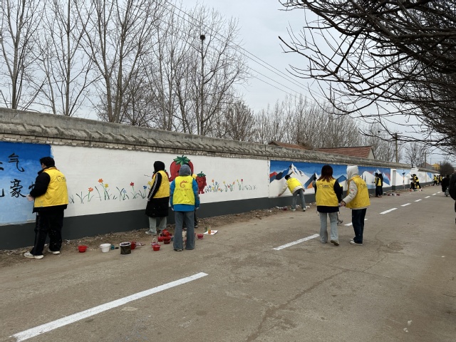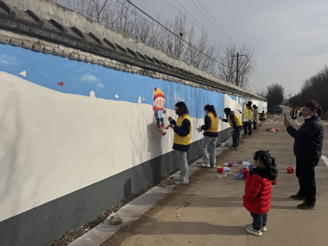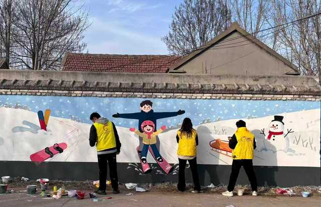 近日,我院“七色花”大学生志愿者服务队携手“尽美社”走进潍坊市寒亭区朱里街道刘毅山滑雪场,开展了“柳毅雪场添彩绘·七色职员献青春”主题墙绘活动。寒风凛冽,却未能阻挡艺术学子服务乡村的热情,队员们在辅导员老师的带领下团结协作,历时一天精心创作,最终完成了总面积逾200平方米的生动墙绘,以专业画笔为冬日雪场增添了一道亮丽而温暖的文化风景线。