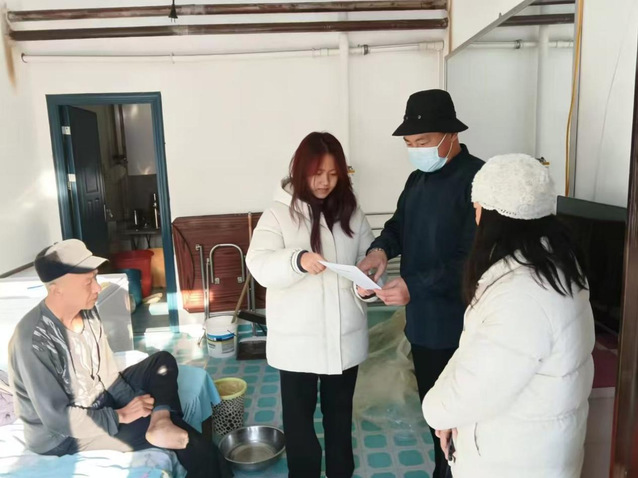 走访过程中,工作人员分组入户,逐一走进辖区老年居民家中,与老人们促膝交谈,详细询问他们的身体状况、冬季取暖方式以及生活中遇到的困难,耐心倾听老人们的诉求与建议。针对鹤岗冬季低温的特点,志愿者们重点叮嘱老人注意防寒保暖,提醒使用电暖器、燃气炉时做好通风,避免发生一氧化碳中毒和用电火灾。