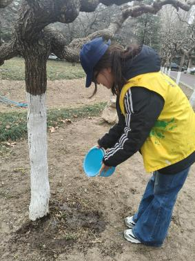 活动过程中,志愿者们分组行动,投入到认养工作中。他们手持工具,分工明确,有的负责为树木浇水,滋润干涸的土地;有的拿起铁锹,为树木松土,改善土壤的透气性;还有的仔细修剪树枝,去除病枝、枯枝,让树木更加健康茁壮地生长。大家不怕脏、不怕累,认真对待每一个环节,用辛勤的汗水诠释着对绿色生命的关爱与呵护。大家分工合作、互相帮助,共同为树木的健康生长努力。志愿者们纷纷表示,这样的活动不仅为绿色发展做出了贡献,也让自己的心灵得到了成长。