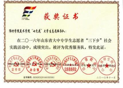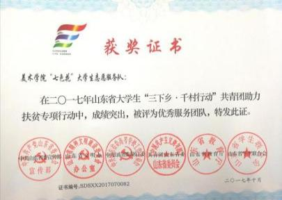 2005年美术学院成立“七色花”大学生志愿者服务队。服务队以“奉献、友爱、互助、进步”的志愿者精神为指导,积极开展各项志愿活动,不断充实同学们的大学生活。 | ||